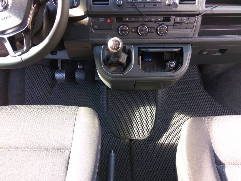 EVA коврики для автомобиля Vw Multivan (Т5/T6) 2015 - наст. время (короткая база) весь салон (1/2 двери, со столиком/ без столика) — это лучший выбор. Покрытие из этого ячеистого полимерного материала покупают сотни автолюбителей. Коврики из ЭВА долговечные, прочные, красивые. Сроки службы изделий — от 5 лет. Они не выделяют вредных веществ, ничем не пахнут. Коврики защищают пол автомобиля от грязи и влаги, а салон — от лишней пыли.